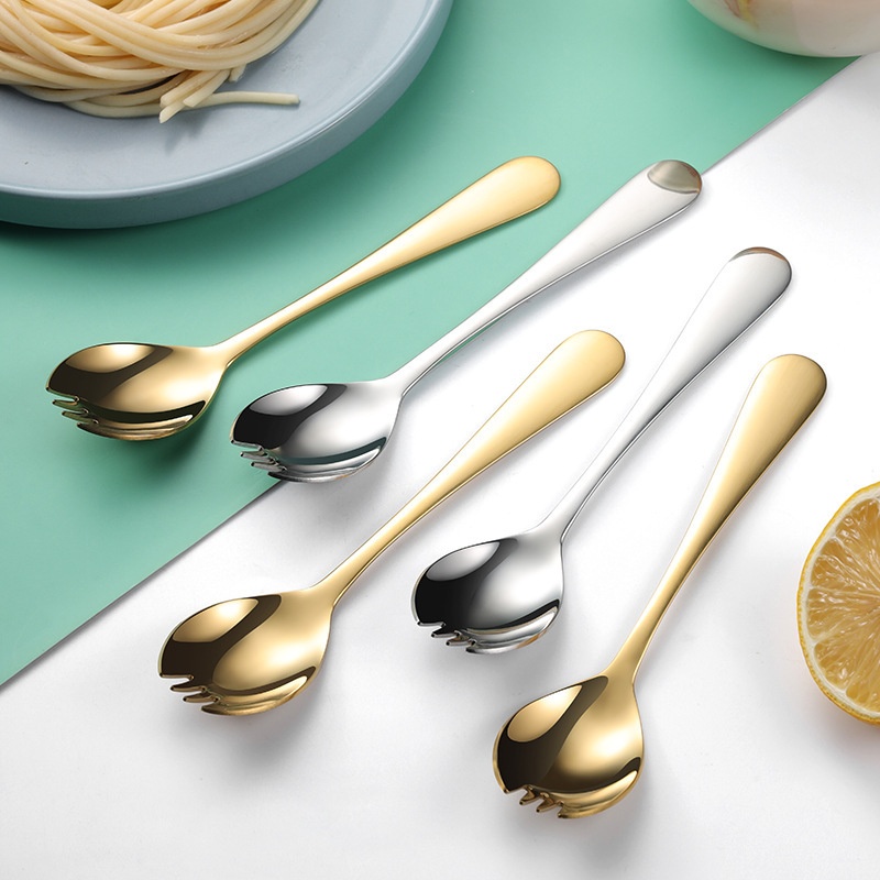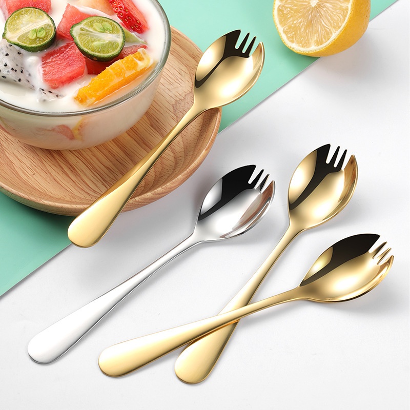 304 Stainless Steel Fork And Spoon Integrated Household Products Student Tableware Creative Dual-use Afternoon Tea Dessert Fork Spoon