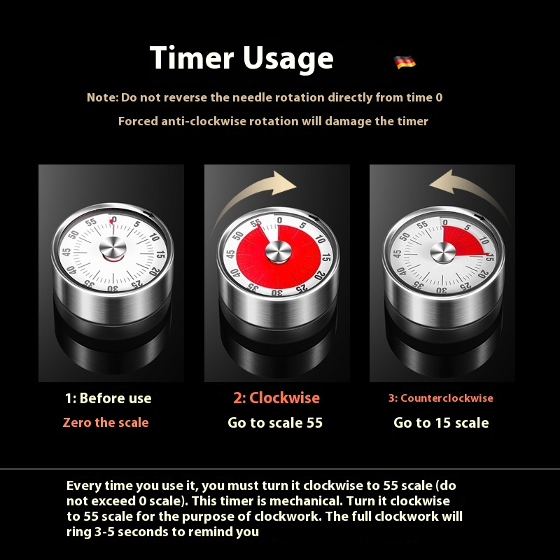 Kitchen Mechanical Timer Cooking Magnetic Time Manager Timer Kitchen Rotating Stainless Steel Countdown