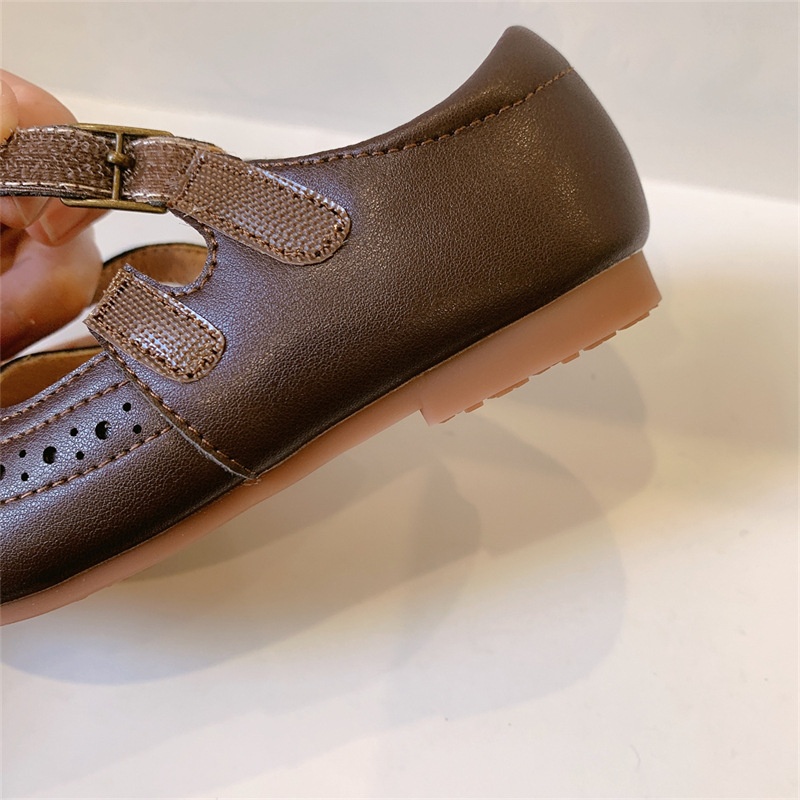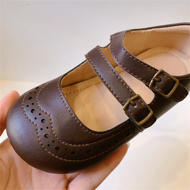 Retro Shallow Mouth Children's Leather Shoes Girls Casual Shallow Mouth Small Single Shoes Baby Mary Jane Shoes Spring Soft Sole