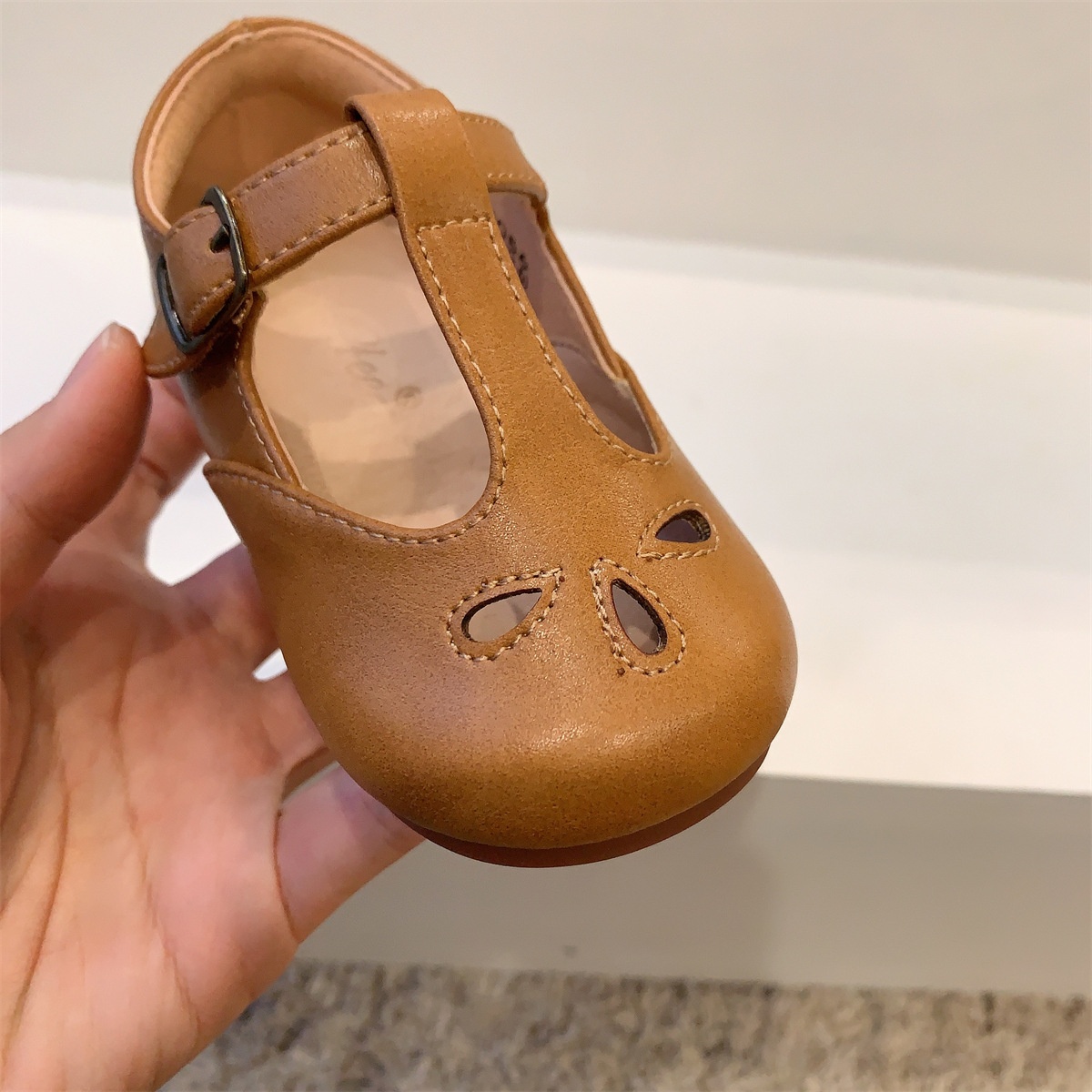 Spring And Autumn Retro Children's Shoes Girls'Leather Shoes Hollow Breathable Baby Princess Shoes Children's Casual Single Shoesy