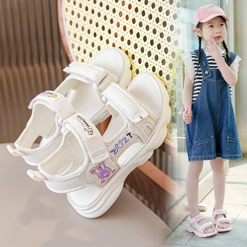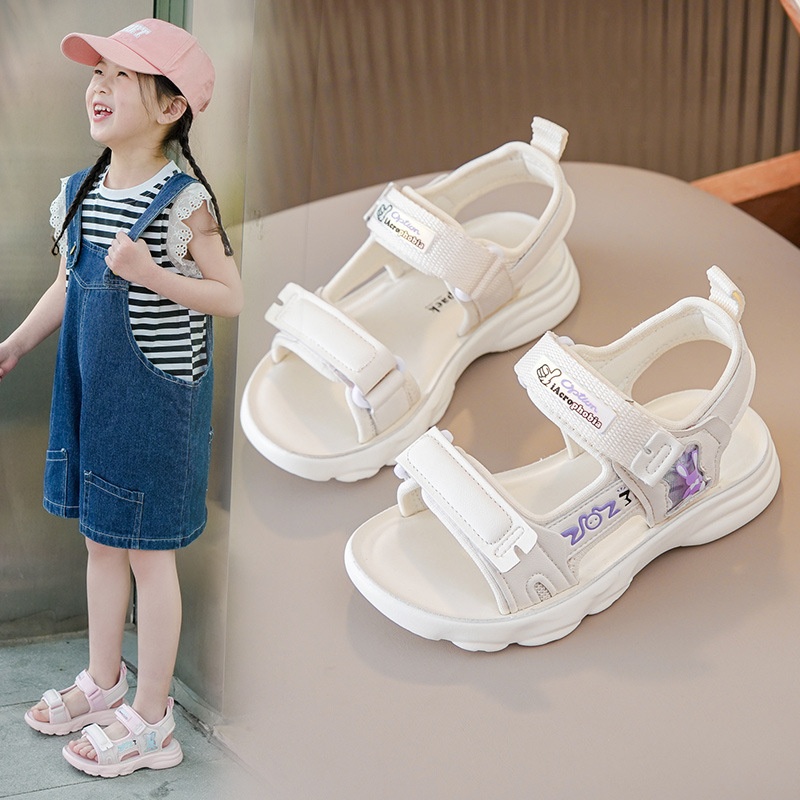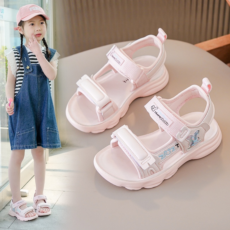 Girls Sports Sandals Summer Models For Middle And Large Children's Leather Children's Shoes Soft Sole Casual Girls Beach Shoes
