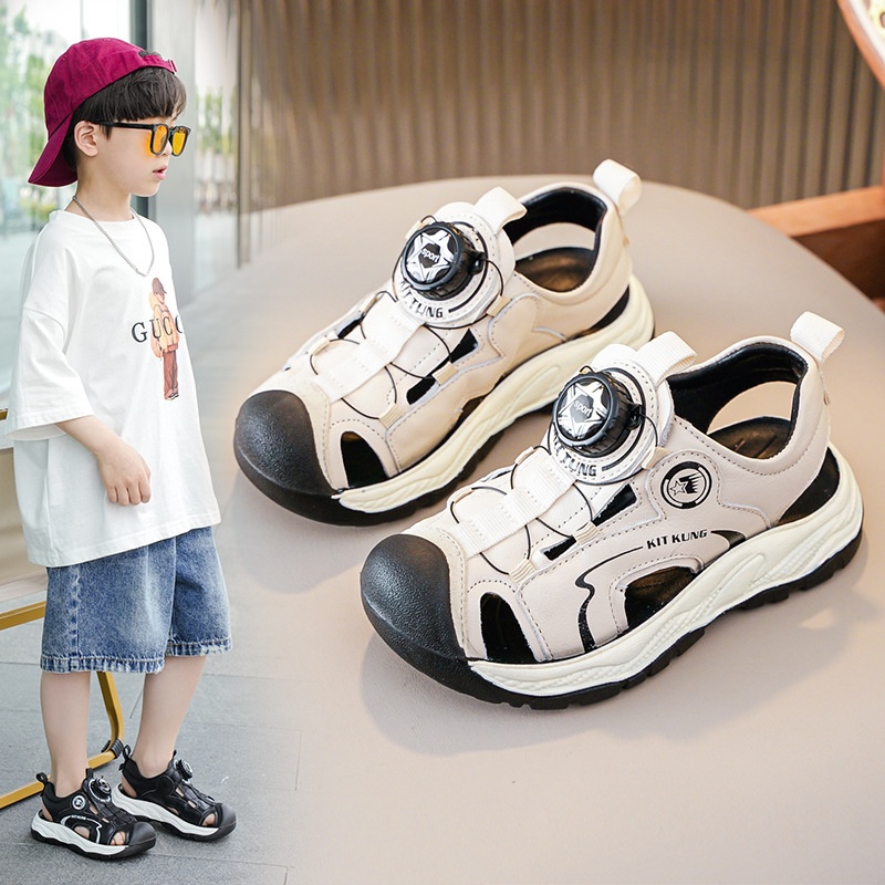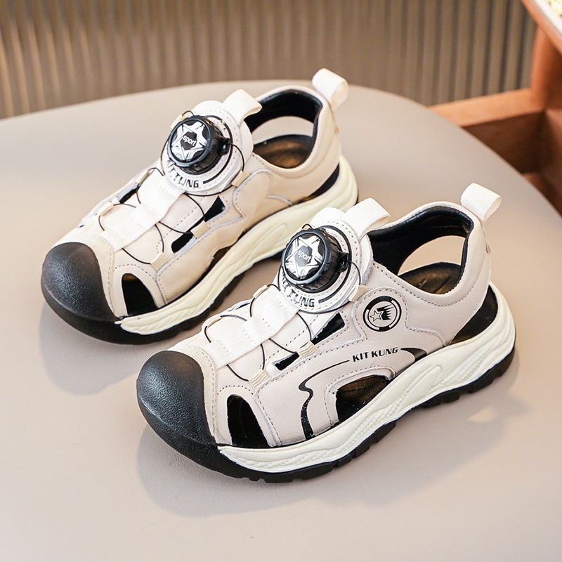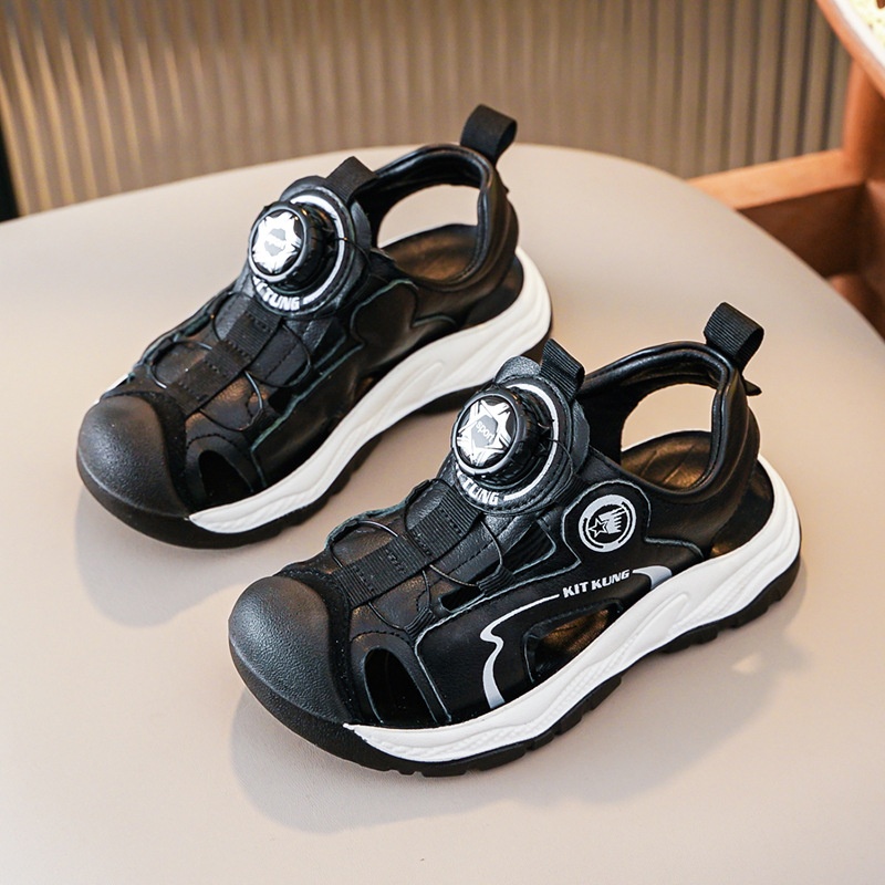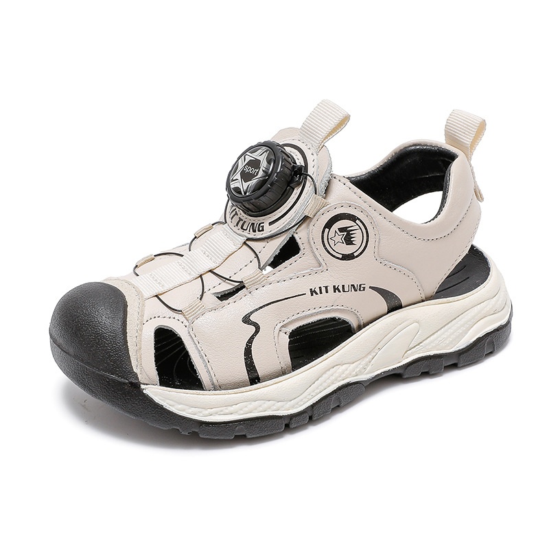Children's Summer Sandals Leather Breathable Baby Shoes Soft Bottom Non-slip Rotating Buckle Boy's Closed Toe Beach Sports Shoes
