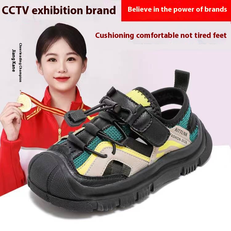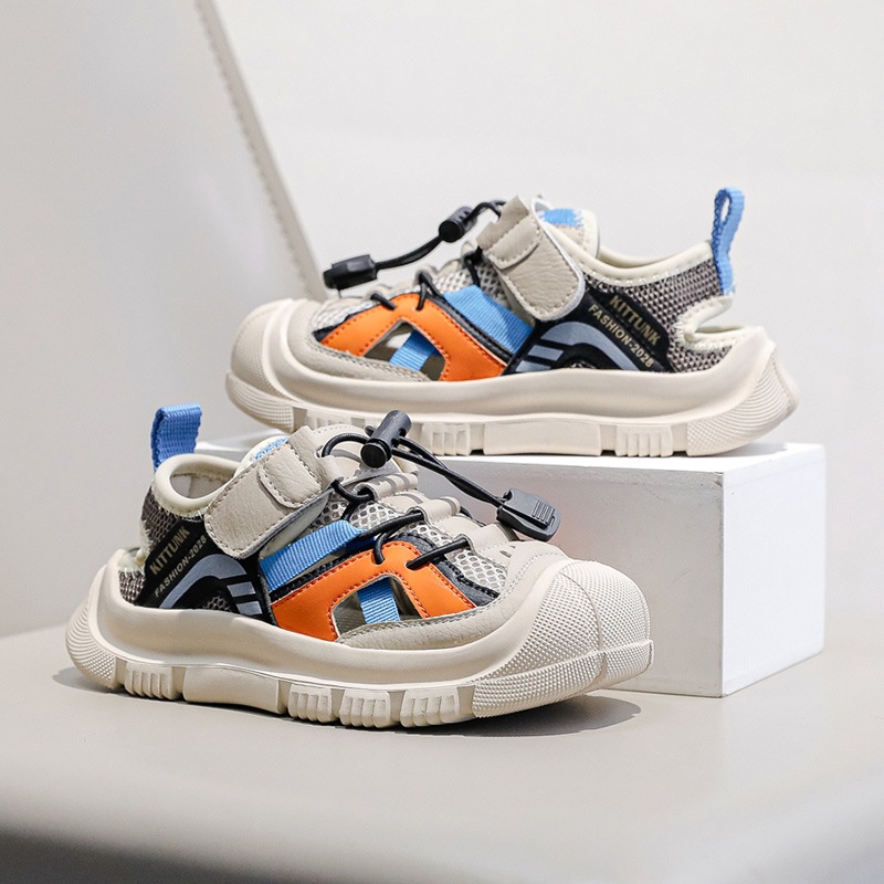 Children's Baotou Sandals Summer Soft Bottom Velcro Boys Beach Shoes Korean Version Of Elementary School Students Hole Shoes