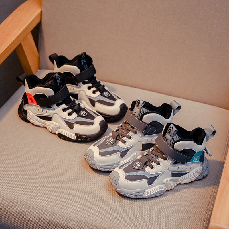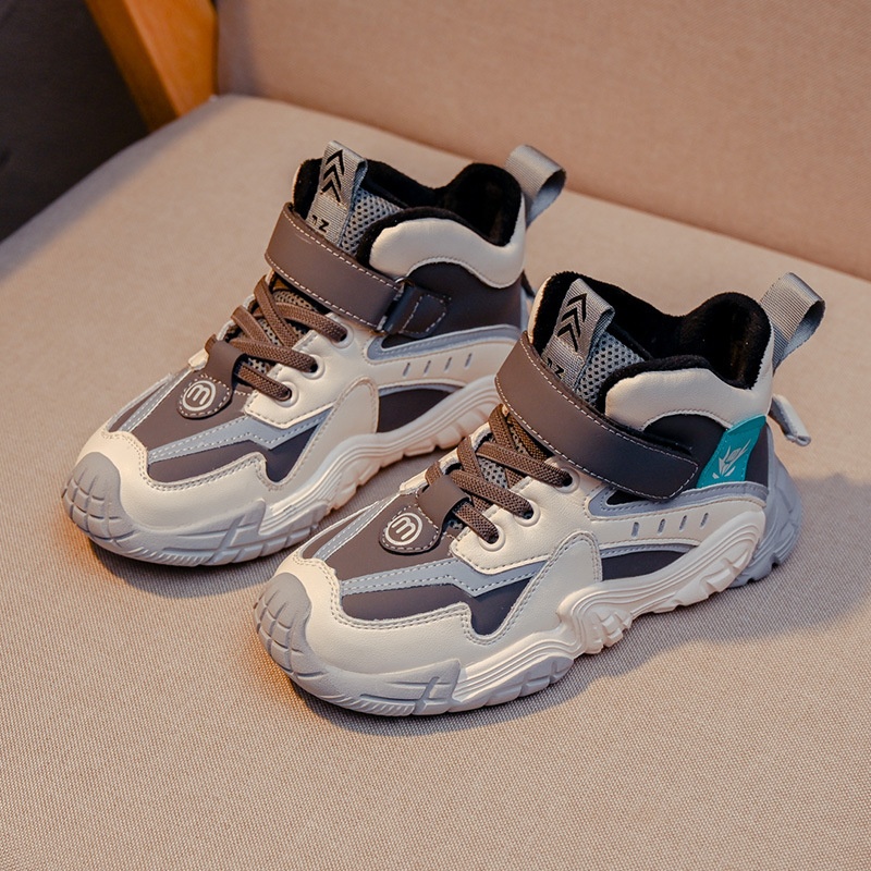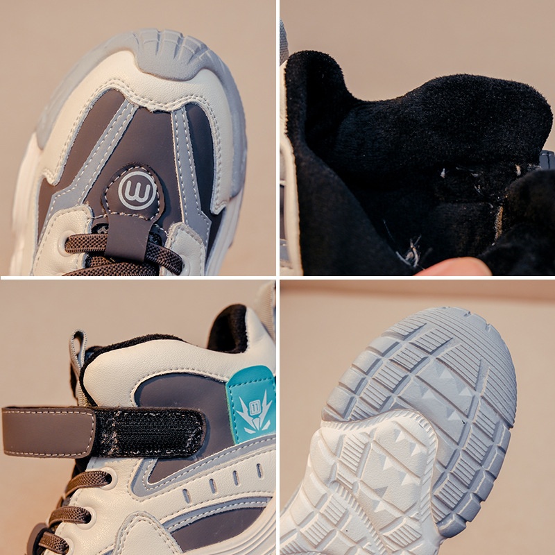 Boys Shoes Autumn And Winter Models For Middle And Large Children's Elementary School Students Casual Sports Shoes Plus Velvet Warm Children's Dad Shoes