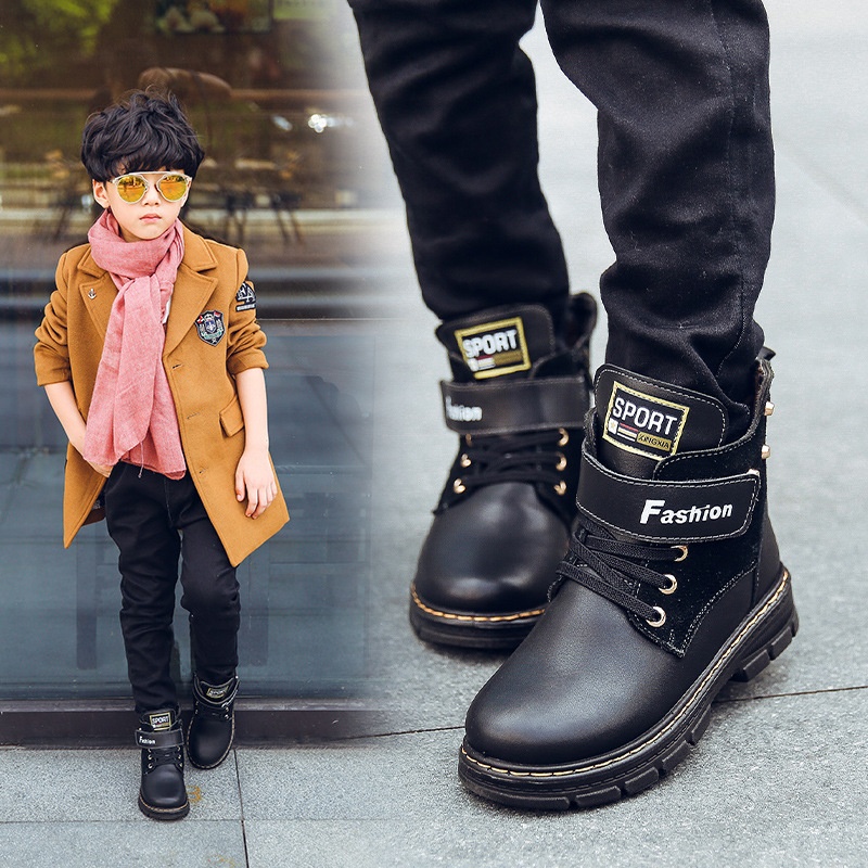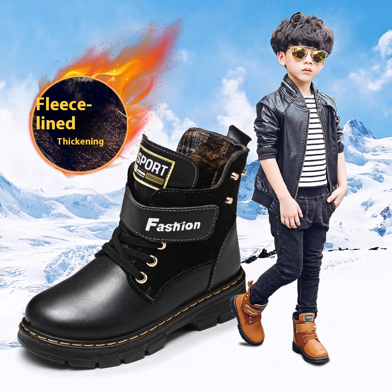 Boys Boots Autumn And Winter Velvet Cowhide Children's Cotton Boots Korean Version Casual Fashion Little Boy Martin Boots