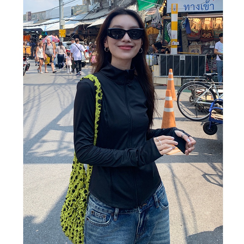Slim-fitting Stand-up Collar Sun Protection Clothing For Women,Original Yarn Sun Protection Clothing,Women's Slim-fitting Hooded Breathable Anti-ultraviolet UPF50+Sun Protection Shirt