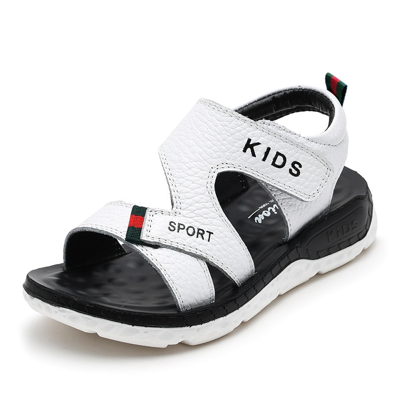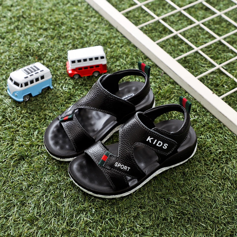 Boys Sandals Summer Soft Bottom Non-slip Leather Children's Shoes Fashionable Open Toe Velcro Boys Beach Shoes