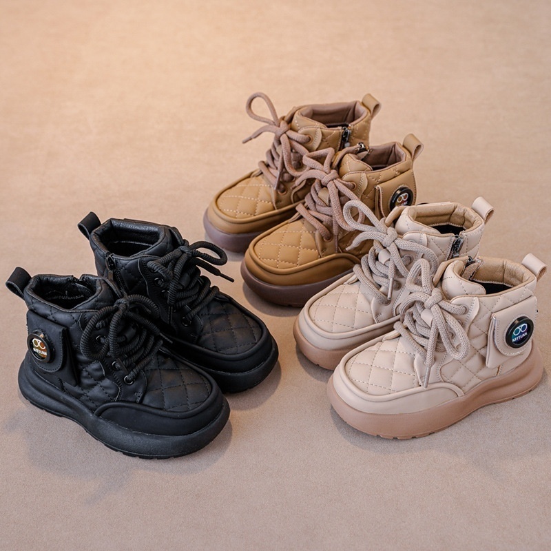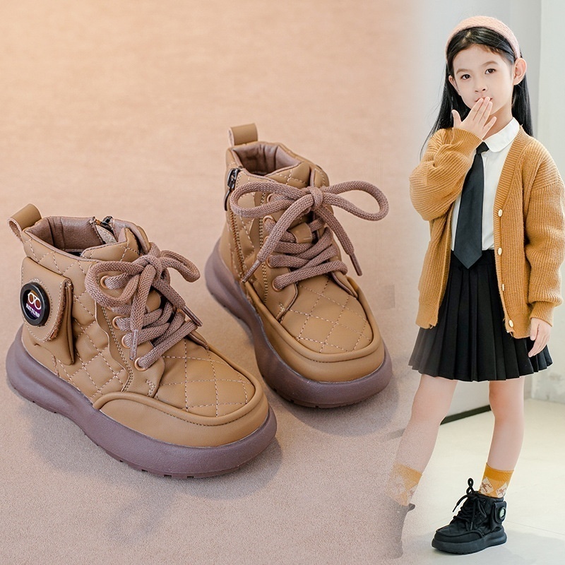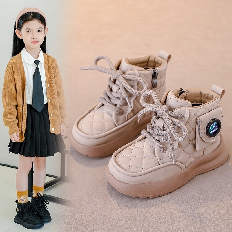 Autumn And Winter Girls Cotton Boots Plus Velvet Thickened Children's Boots Medium And Large Children's Non-slip Soft Bottom Girls Snow Boots