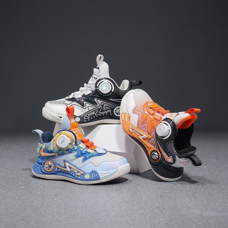 Boys Shoes Autumn And Winter Children's Professional Basketball Shoes Rotating Button Medium And Large Children's Little Boy Sports Shoes