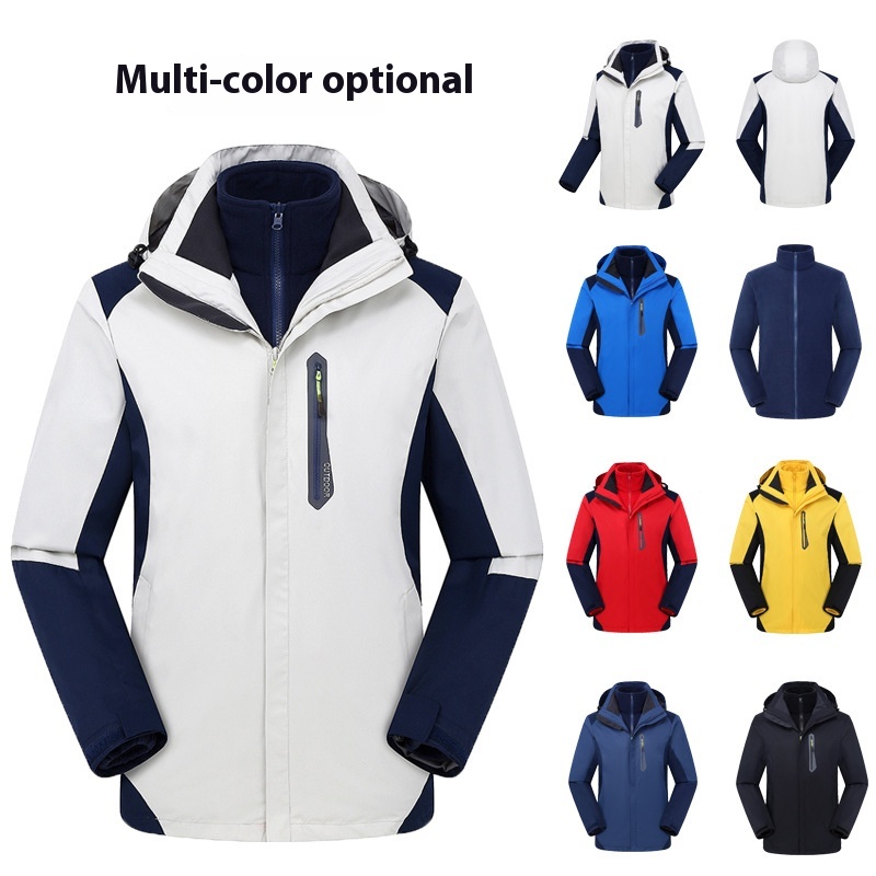 Outdoor Jacket For Men And Women,Three-in-one Windproof And Warm Two-piece Set,Detachable Work Clothes,Printed And Embroidered