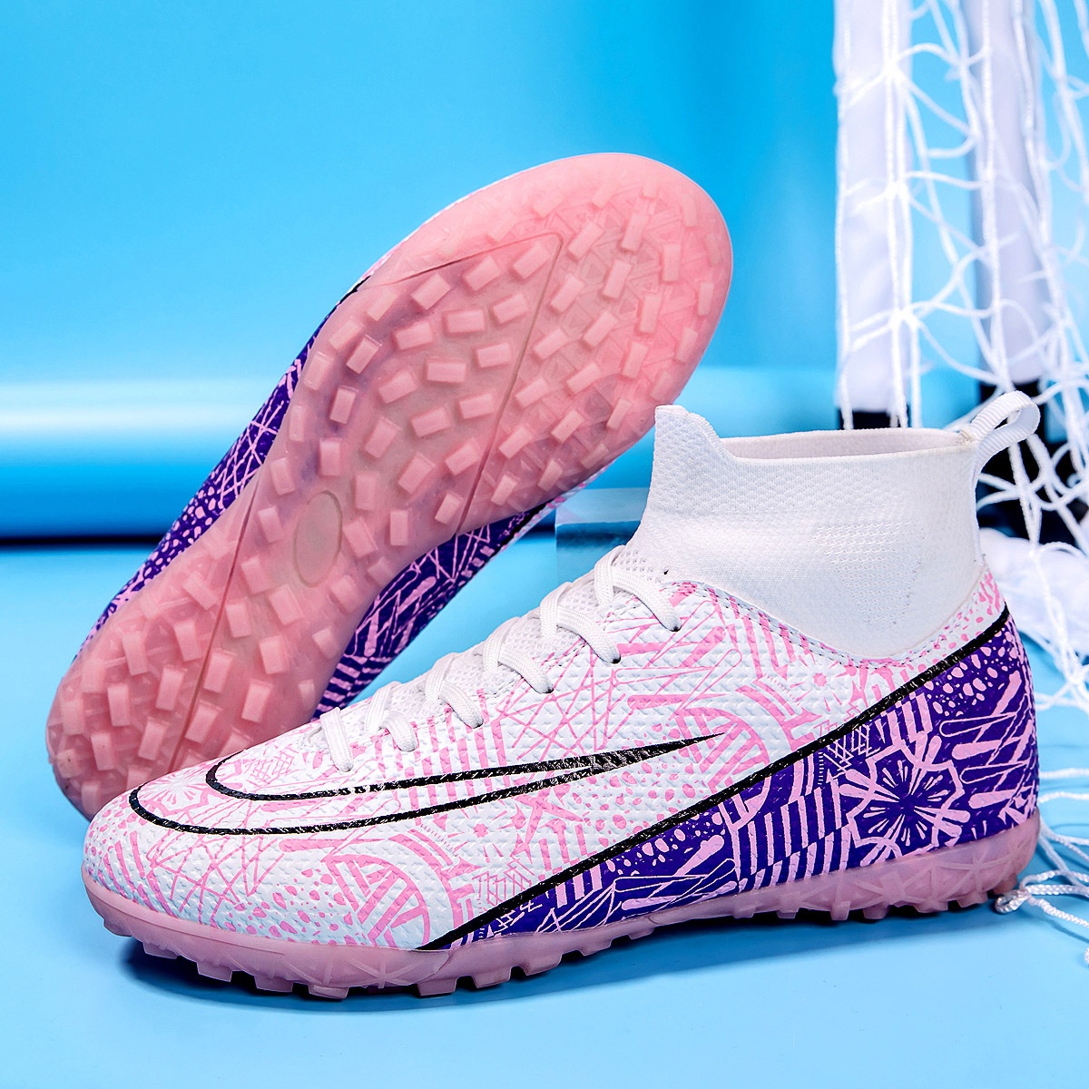 Foreign Trade Football Shoes Men's Broken Nails Mandarin Duck Shoes High Top Flying Socks Tube Men's Youth Student Training Shoes Large Size