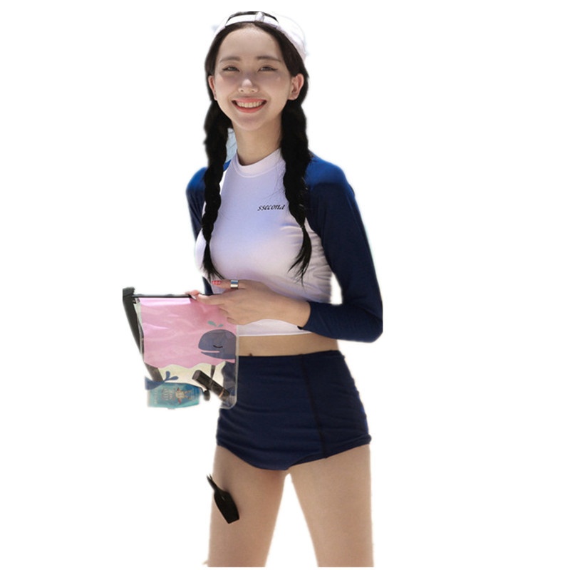 Hot Spring Swimsuit Korean Conservative Sunscreen Long-sleeved High-waist Swimsuit Women's Split Triangle Slimming Belly-covering Sports Swimsuit