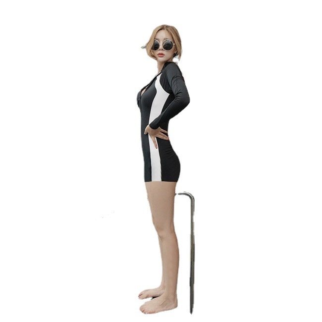 Swimsuit Women's Sports One-piece Zipper Long Sleeve Sun Protection Belly-covering Slim Small Chest Gathered Conservative Swimsuit For Students
