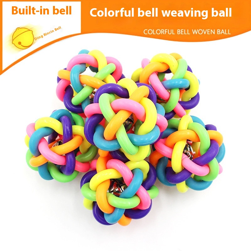 Colorful Bell Woven Ball Dog Toy Ball Large,Medium And Small Molar Sound Dog Training Rainbow Ball Pet Supplies