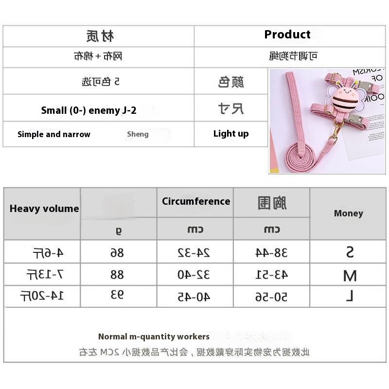 Dog Traction Rope Vest-style Dog Walking Rope Small Bee Dog Chain Medium And Small Dog Teddy Corgi Pet Collar