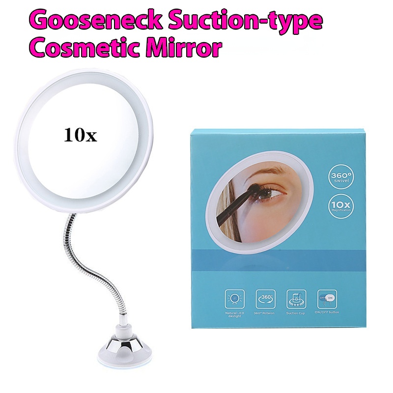 10x Magnifying Glass Suction Cup Makeup Mirror Vanity L E D Makeup Mirror Round360-degree Rotating Bathroom Mirror