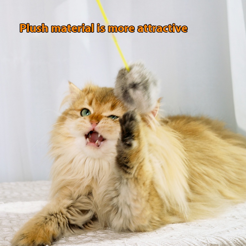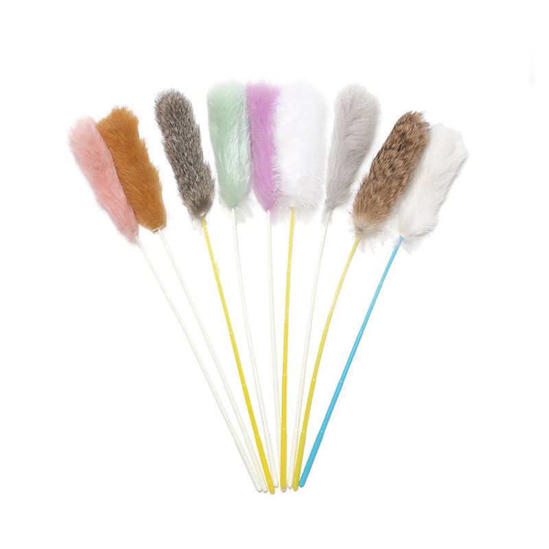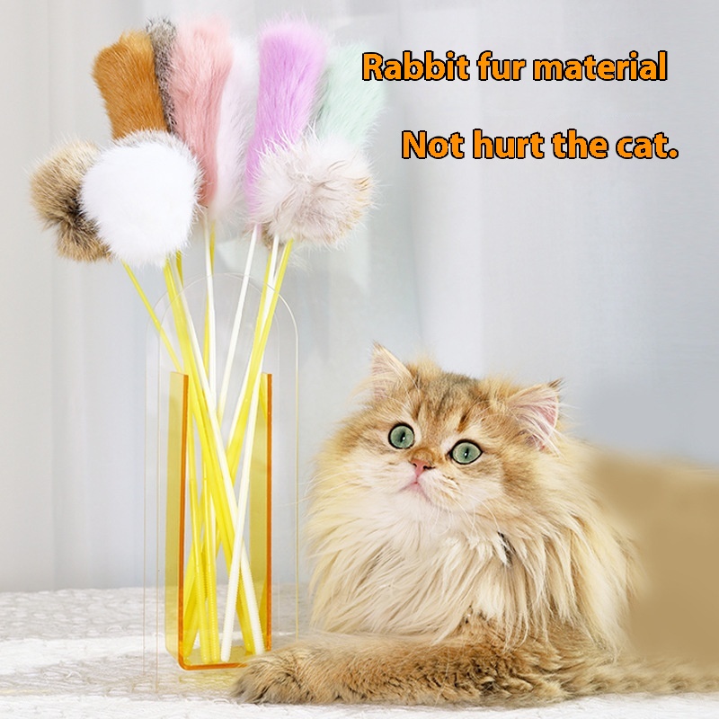 Cute Rabbit Fur Feather Cat Teaser Plush Cat Teaser Elastic Bite Resistant Self-hilarious Cat Toy Pet Supplies