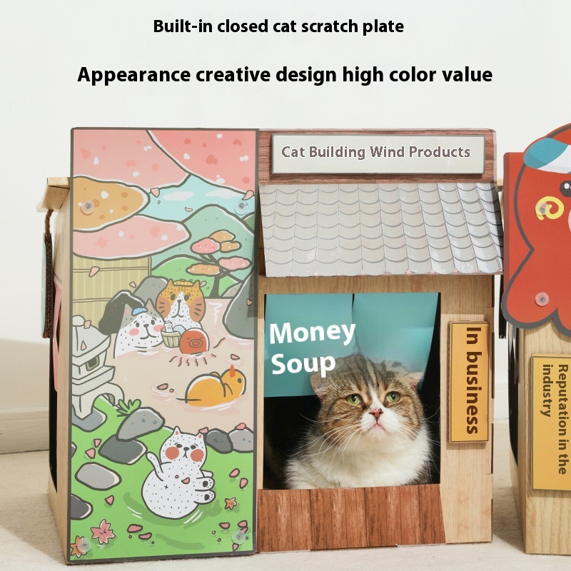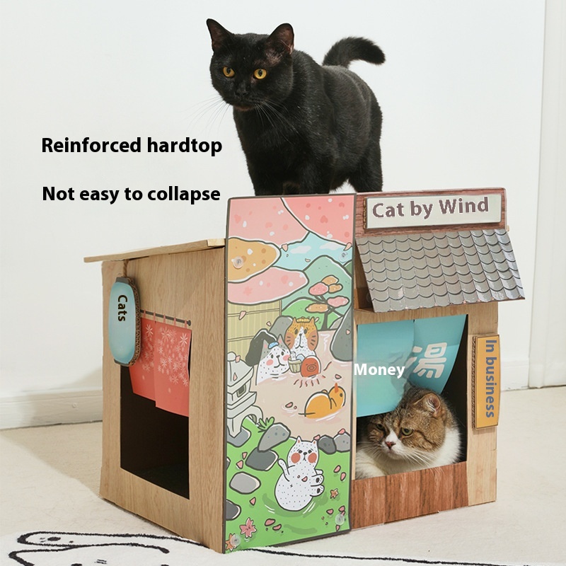 MISSPETLarge Japanese-style Cat Scratching Board Cat House Japanese Style Double-layer Cat Jumping Platform Pet Supplies Cat Toys