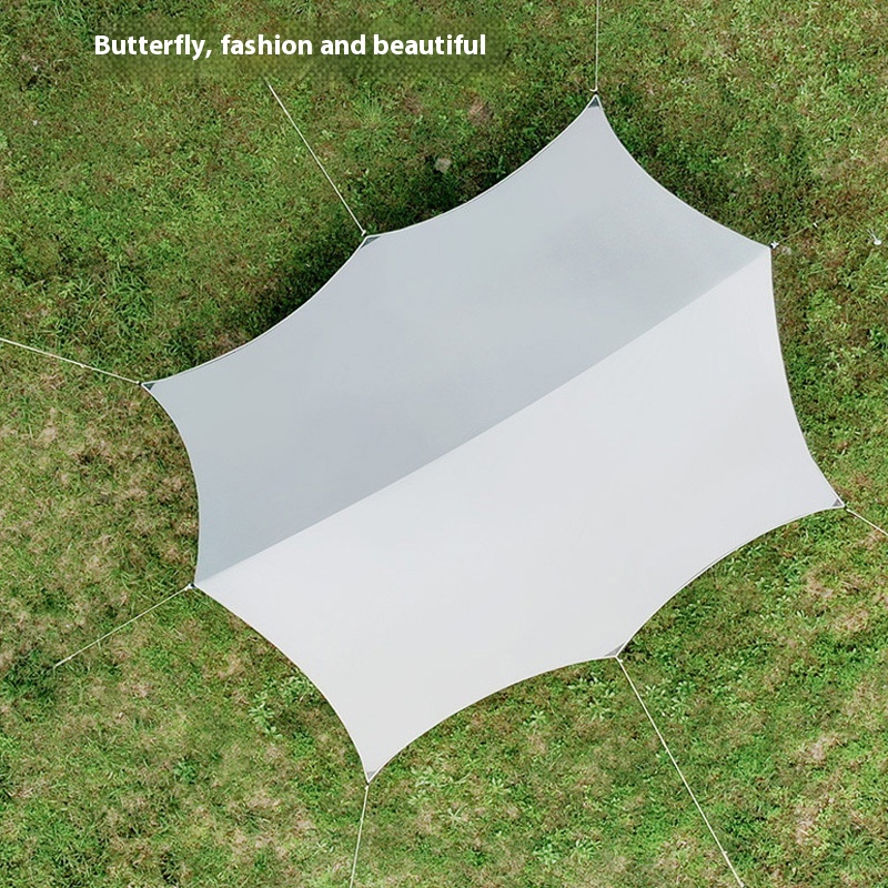 Black Plastic Hexagonal Canopy Tent Waterproof Pergola Lightweight Silver-coated Sunscreen Canopy Cloth Outdoor Camping Rainproof Sunshade