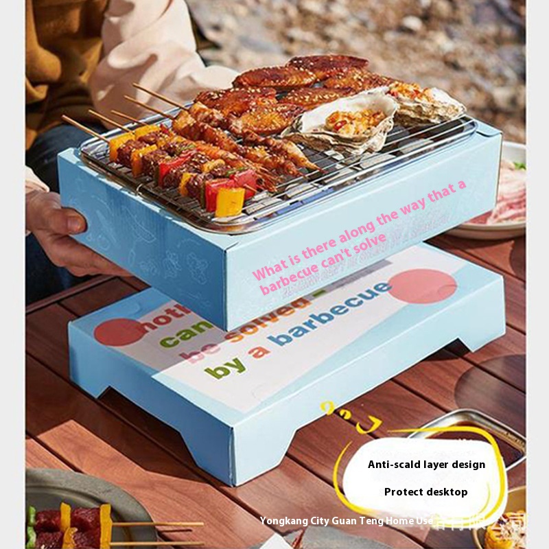 SDisposable Barbecue Grill Household Barbecue Grill Outdoor Portable Camping Picnic Barbecue Grill Stainless Steel