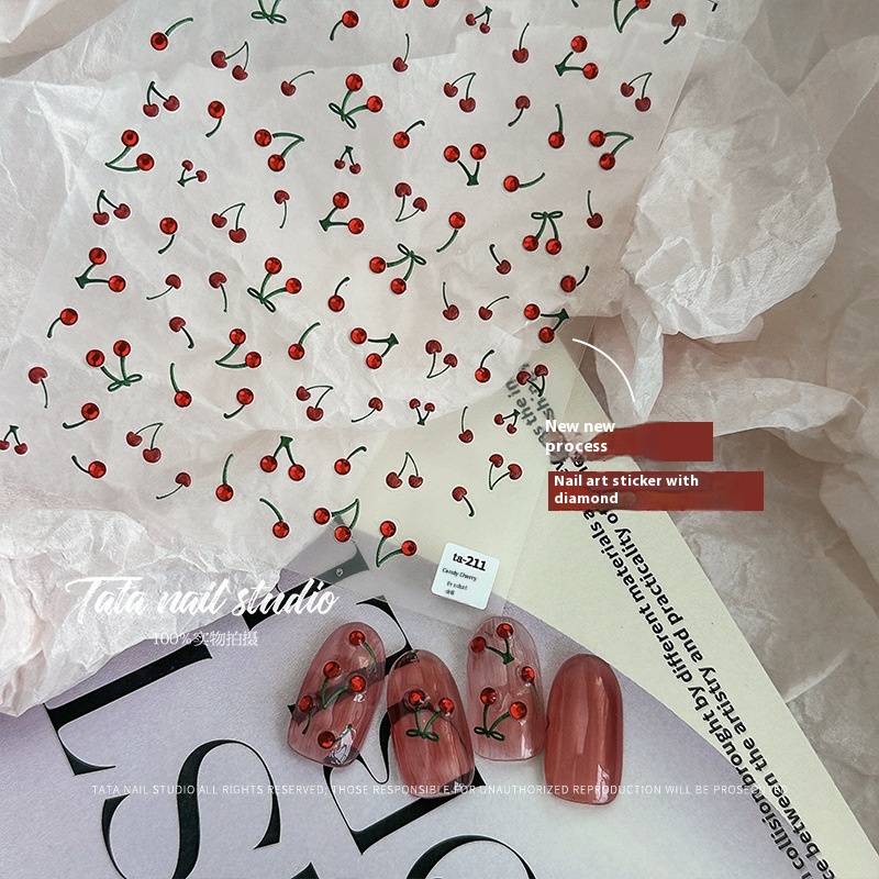 Tomoni Brand Tata Cooperation Model Crystal Diamond Nail Stickers Japanese Cute Nail Stickers Nail Cherry TA211