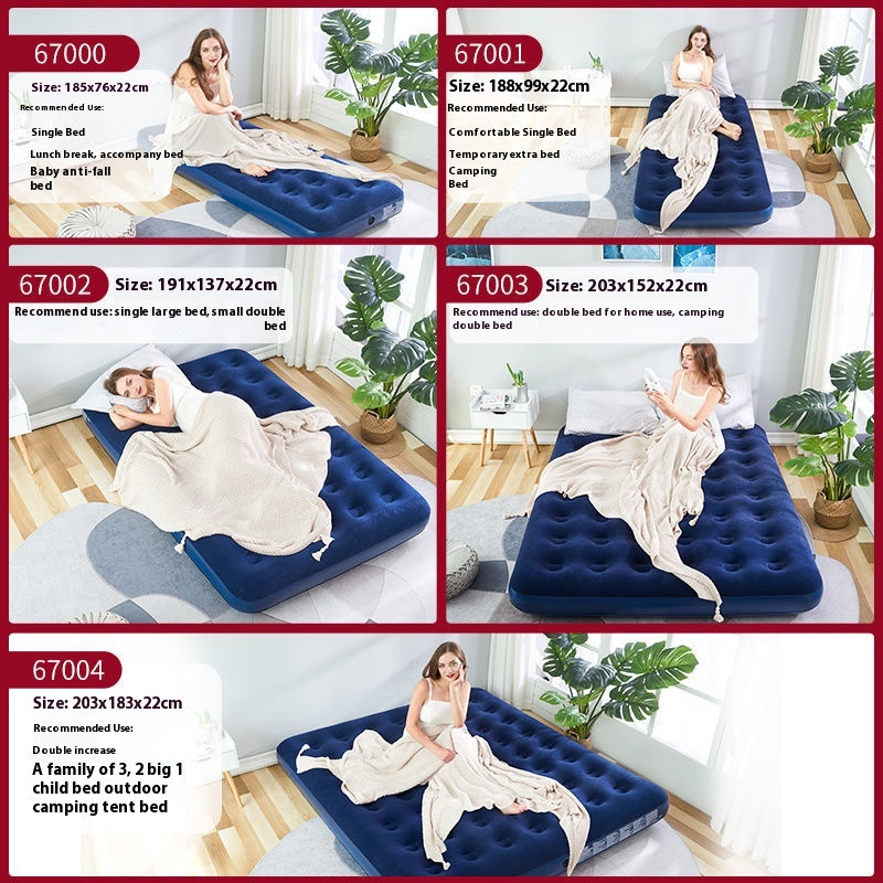 INTEXOutdoor Line Pull Air Bed Flocking Inflatable Bed Camping Outdoor Inflatable Mat Thickened Inflatable Air Bed