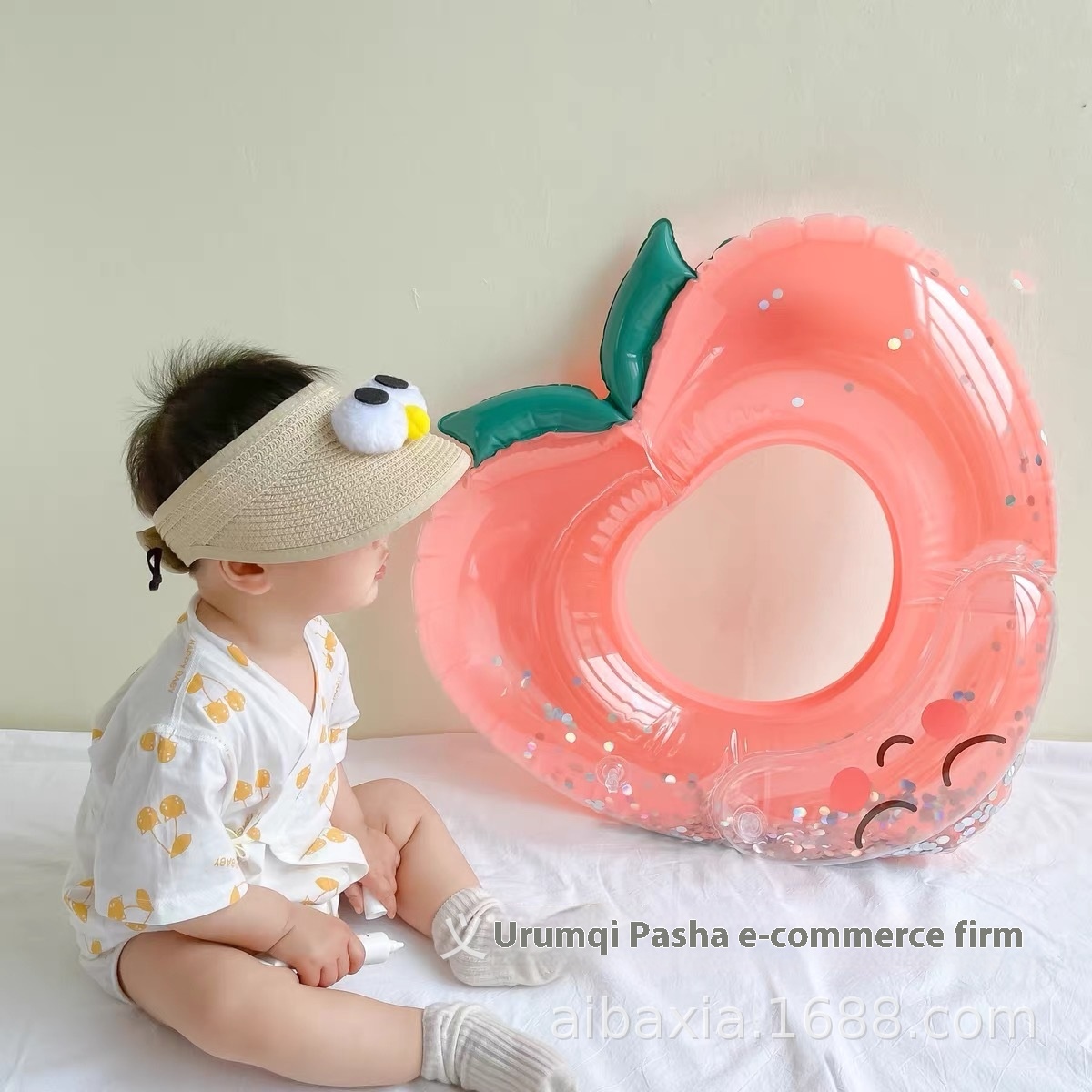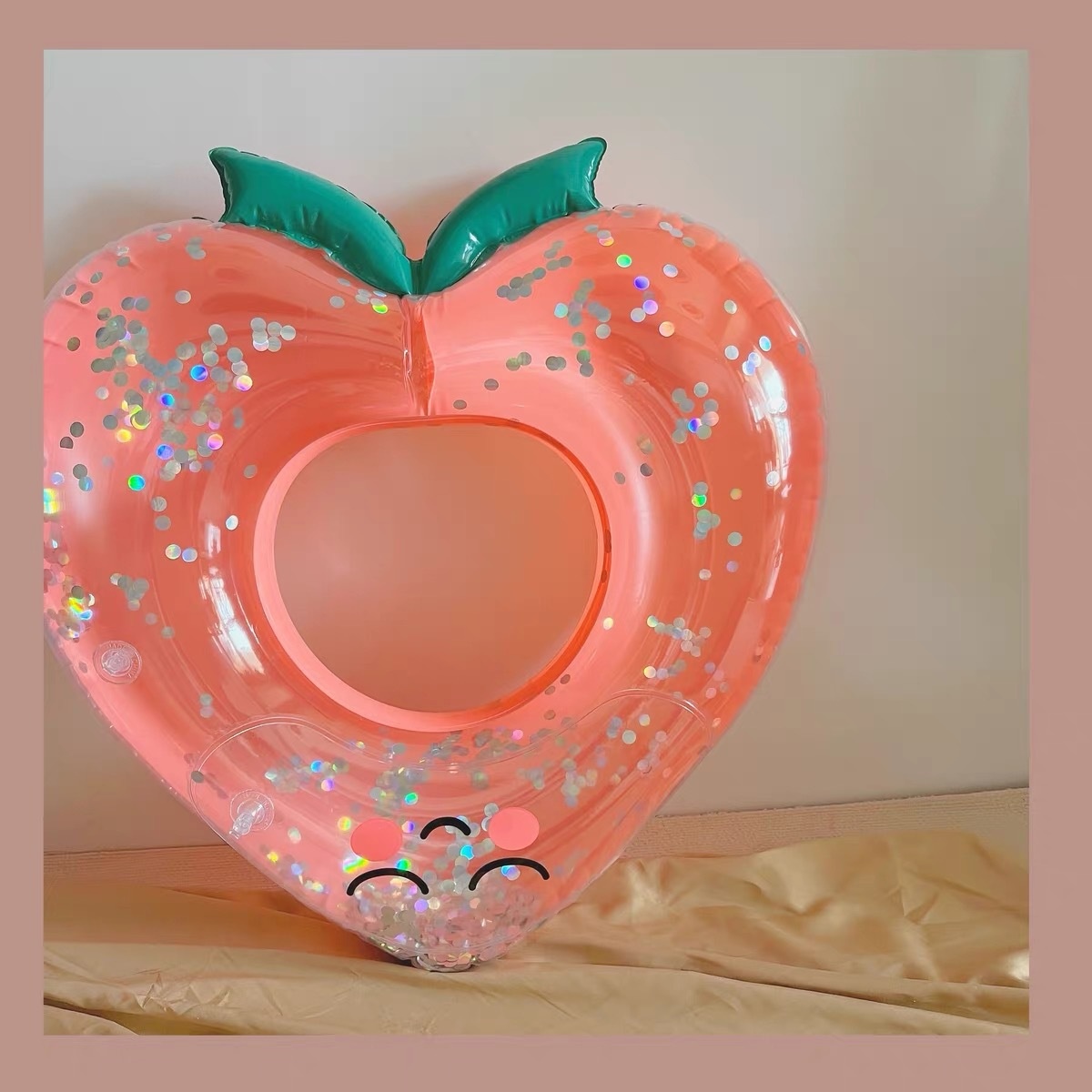 Basha Sequin Peach Shape Swimming Ring Inflatable Pvc Armpit Pink Smiley Face Bow Swimming Ring