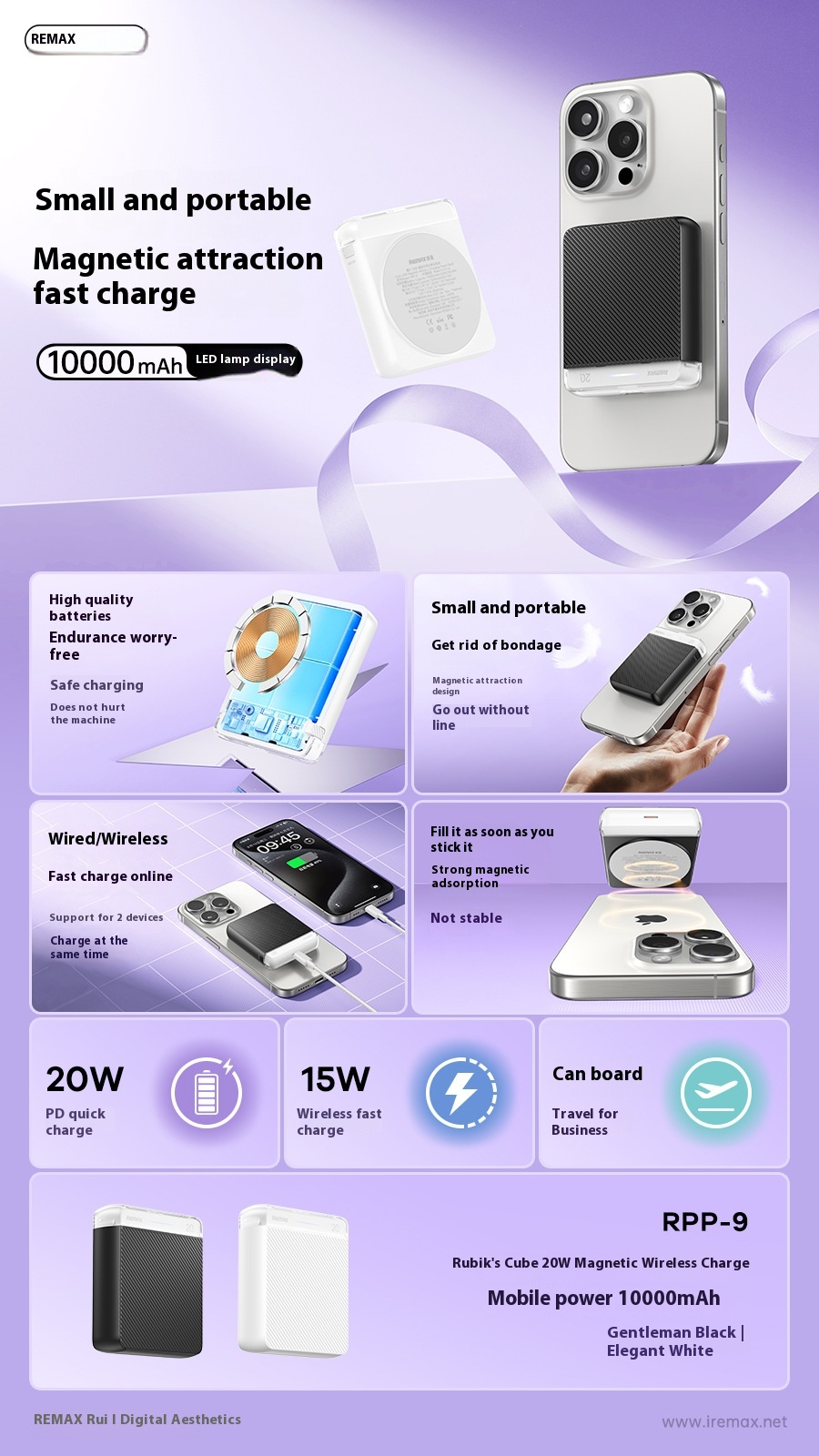Cube20 WMagnetic Wireless Charging Power Bank Mobile Phone Emergency Fast Charging Power Bank