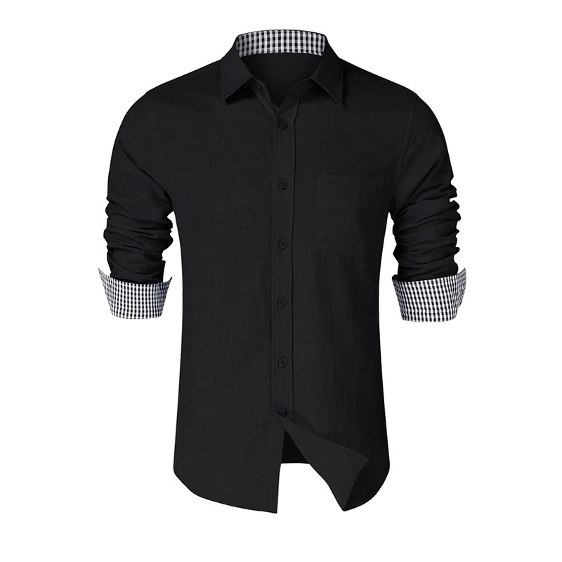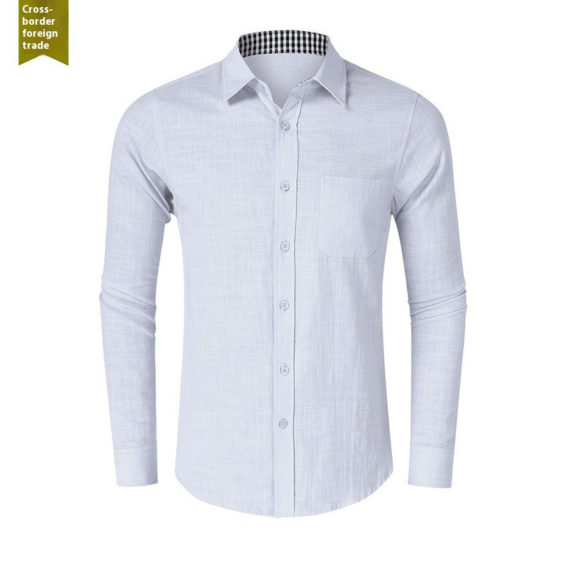 Autumn And Winter Pure Cotton Long-sleeved Shirt Men's European And American Men's Inch Shirt Men's Shirt Foreign Trade Solid Color Men's Clothing