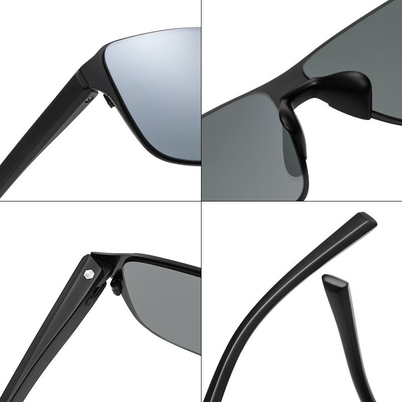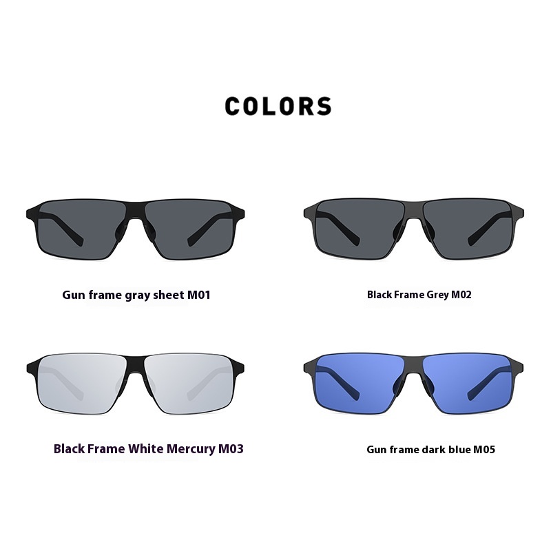 Classic Men's Polarized Sunglasses Casual Stainless Steel Square Frame Tee With Mirror Nylon Polarized Sunglasses
