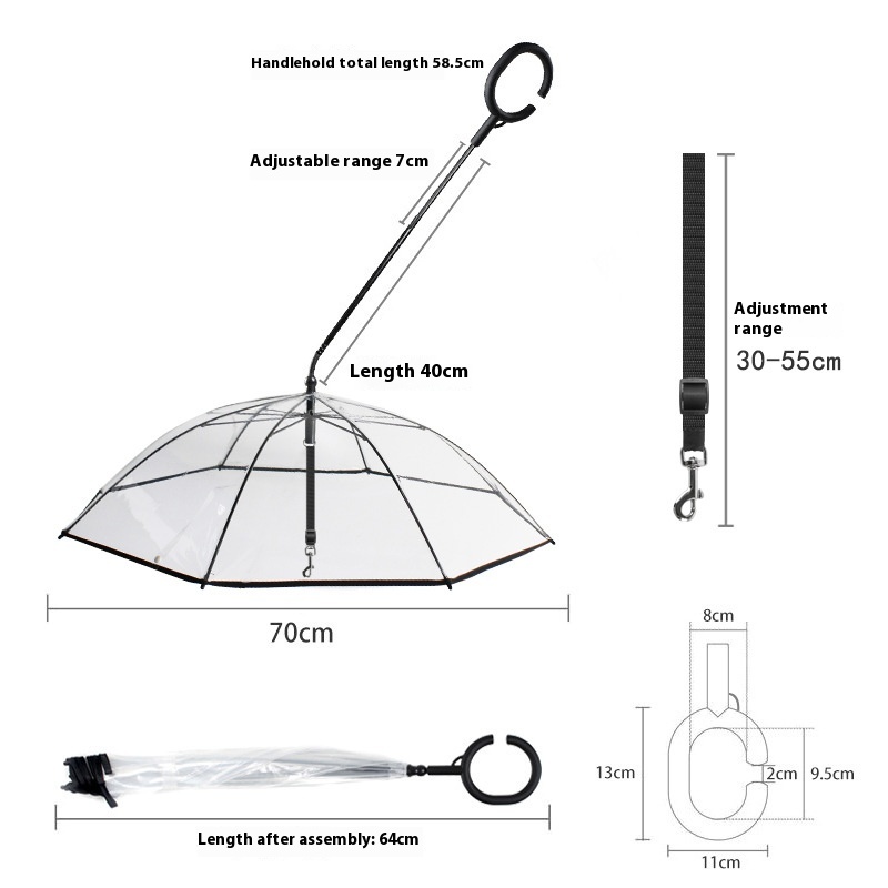Transparent Pet Umbrella Dog C-shaped Umbrella Pet Products Sales Adjustable Rainy Day Dog Walking Leash