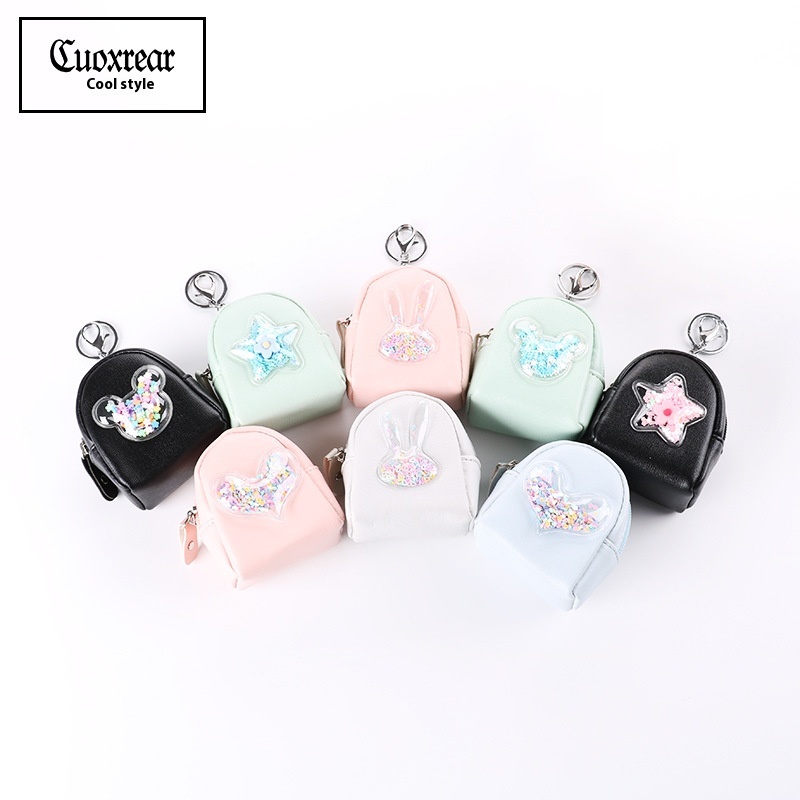Korean Version Of Popular Quicksand Coin Purse Creative P U Leather Women's Mini Bag Fashion Wallet Cartoon Coin Key Bag