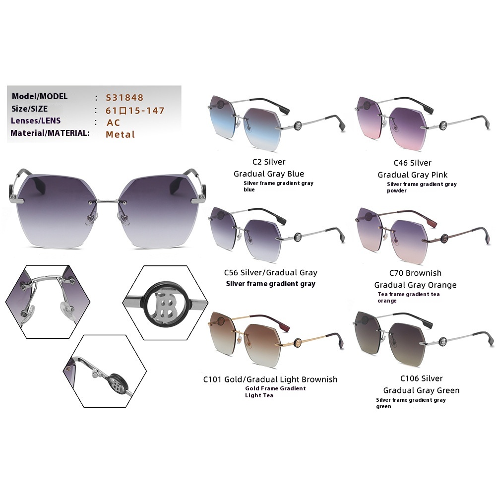 Glasses Fashion Frameless Trimmed Sunglasses Men S31848 Anti-ultraviolet Metaly Street Shooting Sunglasses Women