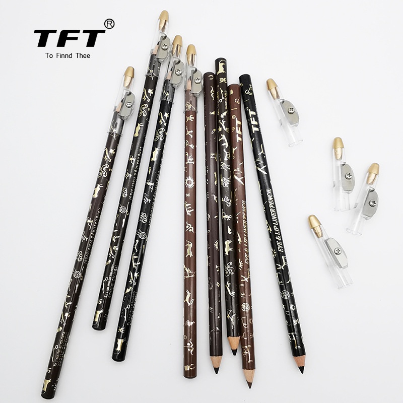 T F T4-color Eyebrow Pencil Wooden Pen With Pencil Sharpener Waterproof And Non-fading