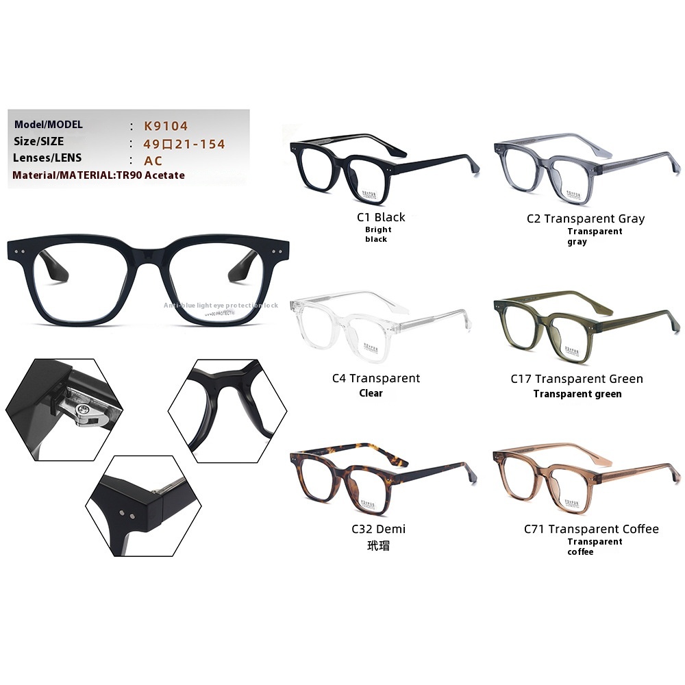 K9104's Square Frame Can Be Matched With Myopia Glasses Frame Women's Fashionable TRPlate Foot Anti-blue Light Flat Glasses Frame
