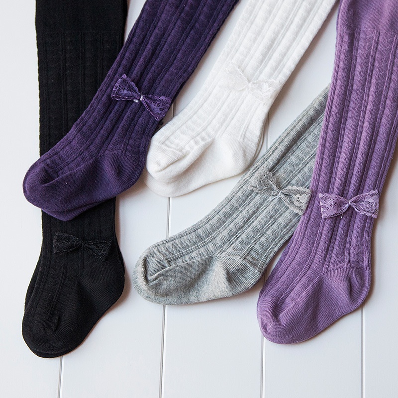 Spring And Summer Thin Cotton Lace Bow Vertical Stripe Love Children's Pantyhose Girls Dance Bottoming Socks