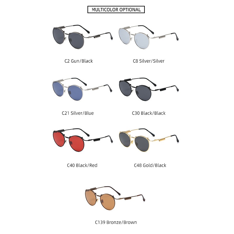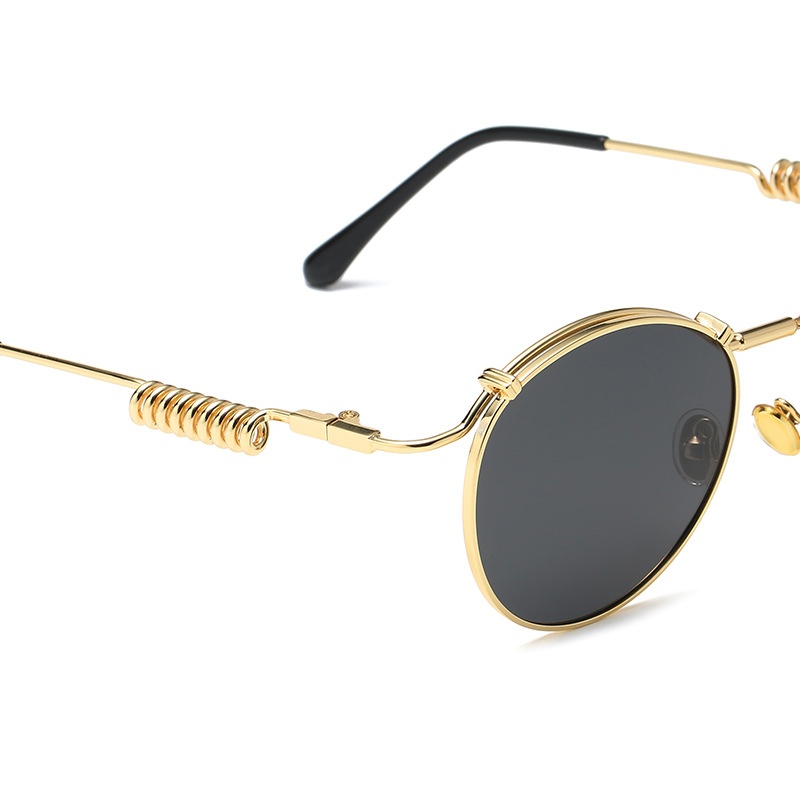 S25125 Metal Retro Style Round Polarized Punk Sunglasses Women'sy Fashion Spring Temples Street Shooting Sunglasses Men