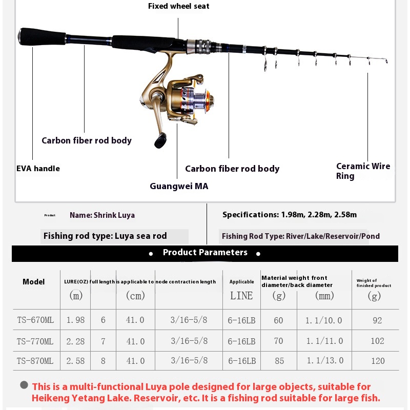 Universal Telescopic Lure Rod Straight Handle Spinning Wheel Carbon Ultra-light Retractable Raft Rod Horse Mouth Rod Lure