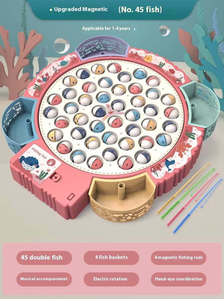 Electric Rotating Magnetic Fishing Toy Children's Educational Early Education Multifunctional Music Rotating Fishing Plate Kids Gift