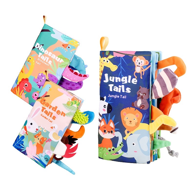 Dinosaur Animal Tail Cloth Book Educational Enlightenment Early Education Cloth Book0-1 Year Old Infant Toy Baby Cloth Book