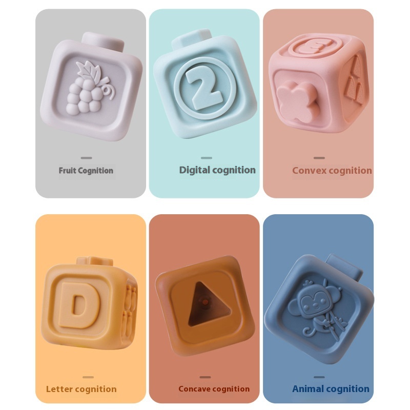 Baby Soft Rubber Building Blocks Stacking Play Chewable Teething Rubber Ring Baby0-1 Year Old Early Education Educational Toys Children
