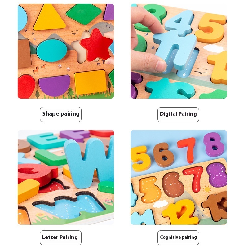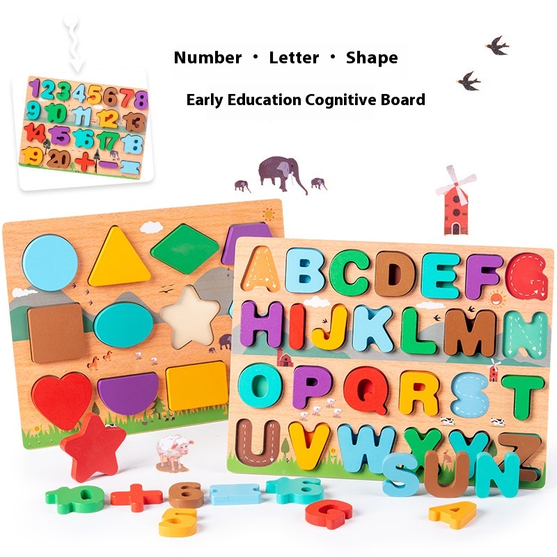 Puzzle Uppercase And Lowercase Three-dimensional26 Letters And Numbers Puzzle Wooden Hand Grab Board Educational Toy