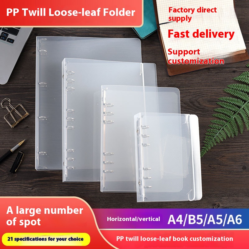 Twill Pp Loose-leaf Folder Transparent Horizontal Information Folder A4 A5 A6 B5 Punched Test Paper Hand Account Storage Folder