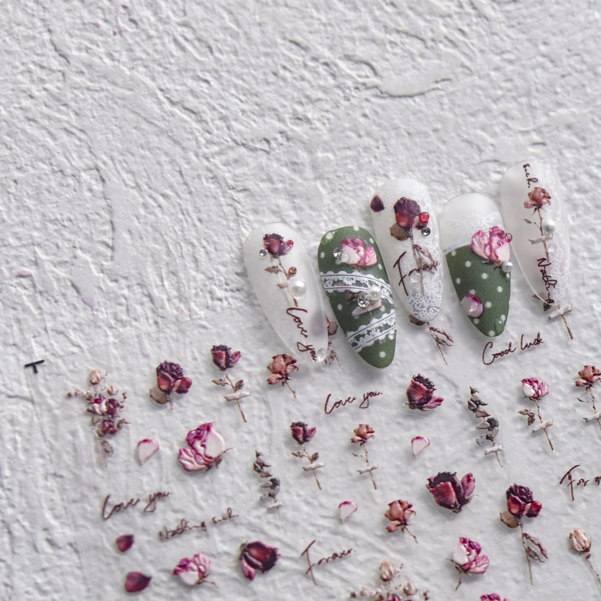 Tomoni Relief Nail Stickers Retro Nail Stickers Japanese Rose Date2913
