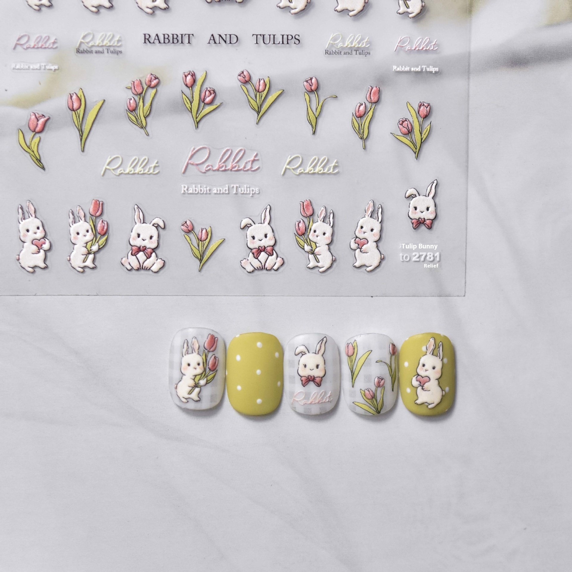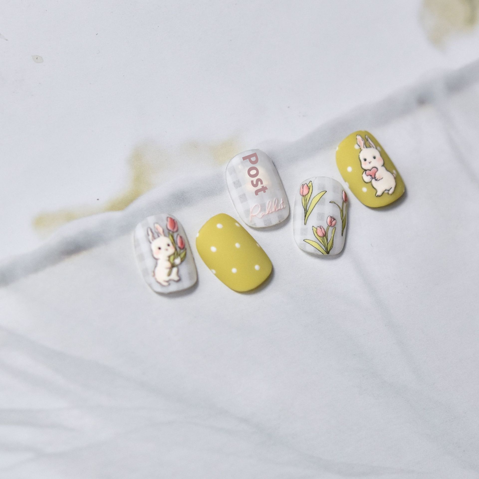 Tomoni Relief Nail Stickers Japanese Retro Nail Stickers Plaid Bunny Nail Accessories