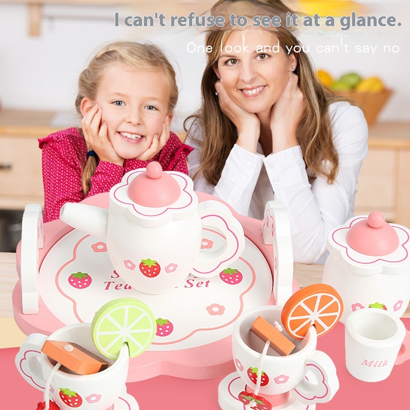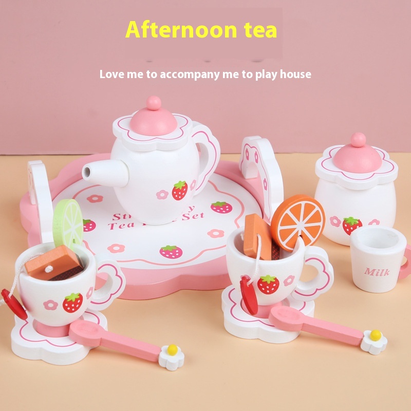 Children's Wooden Simulation House Role Play Pink Strawberry Afternoon Tea House Tea Set