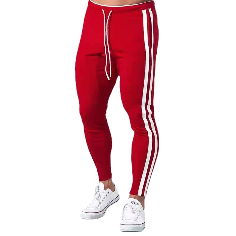 Crazy Muscle Men's Tight Trousers Sports Leisure Sweat-absorbent Contrast Color Drawstring Zipper Small Feet Trousers Autumn