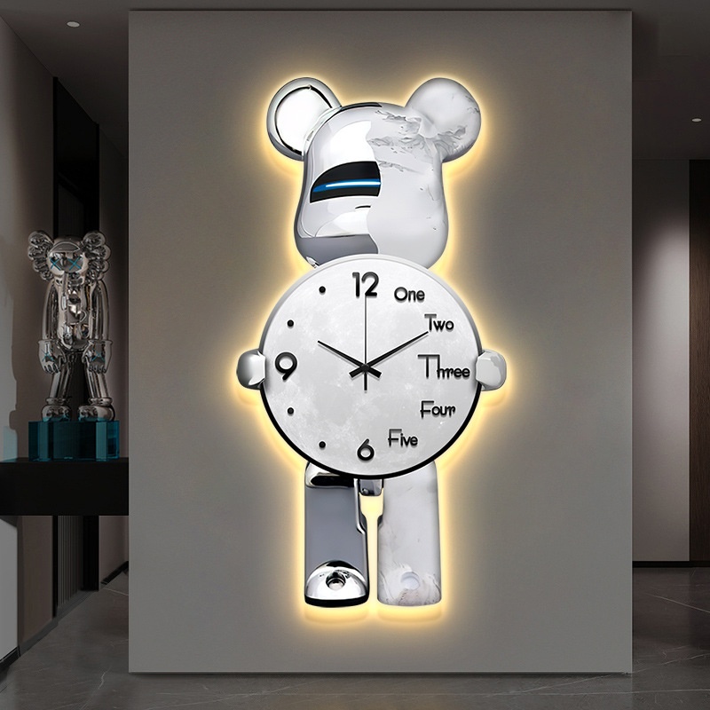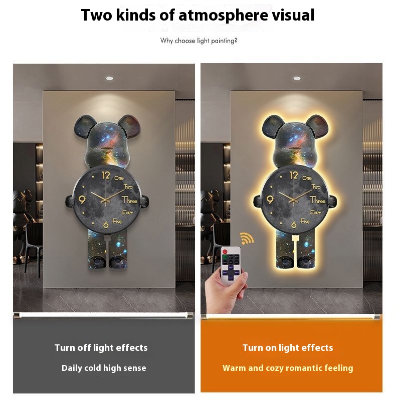 Violent Bear Clock Wall Clock Living Room Internet Celebrity Modern Simple Atmosphere High-end Creative Clock Wall Lamp