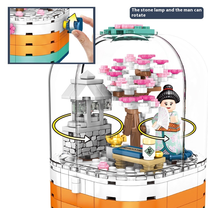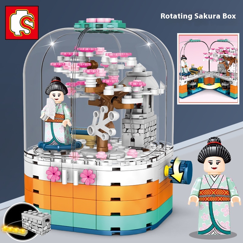 Semper Building Blocks Light Cherry Blossom House Rotating Box Compatible With Children's Assembly601077 Building Block Toys