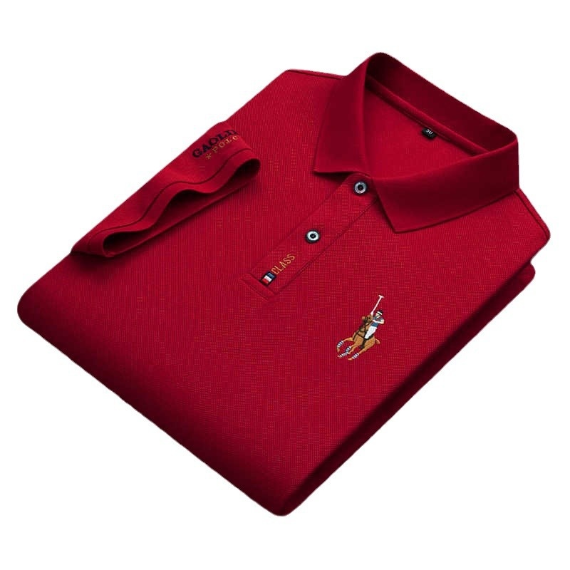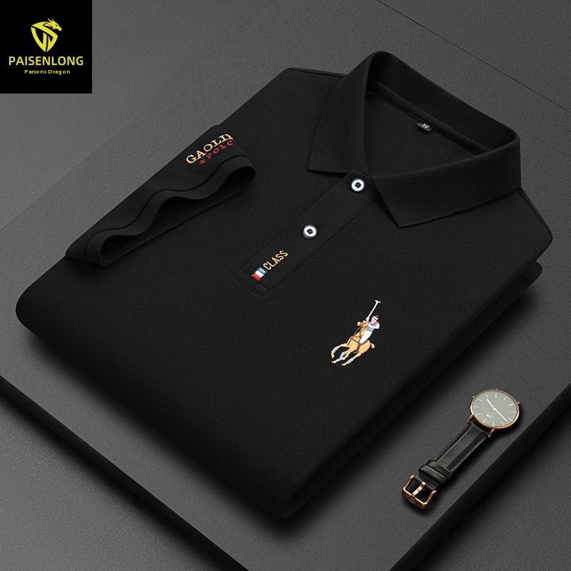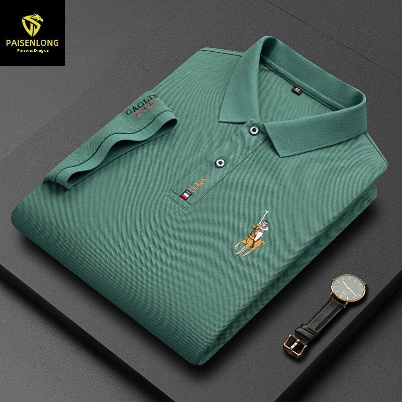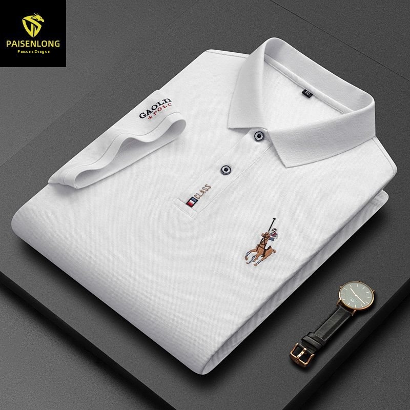 Paisonlong Men's Short-sleeved T-shirt POLOShirt Lapel Pure Cotton Embroidery Beaded Middle-aged POLOShirt Men